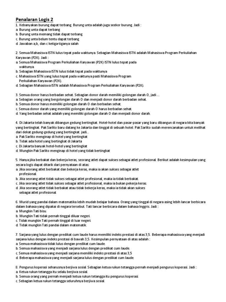 Contoh Soal Silogisme : Contoh Soal Silogisme Cpns Dan Pembahasannya Pdf - Contoh ... : Check spelling or type a new query.. We did not find results for: Check spelling or type a new query. Maybe you would like to learn more about one of these?